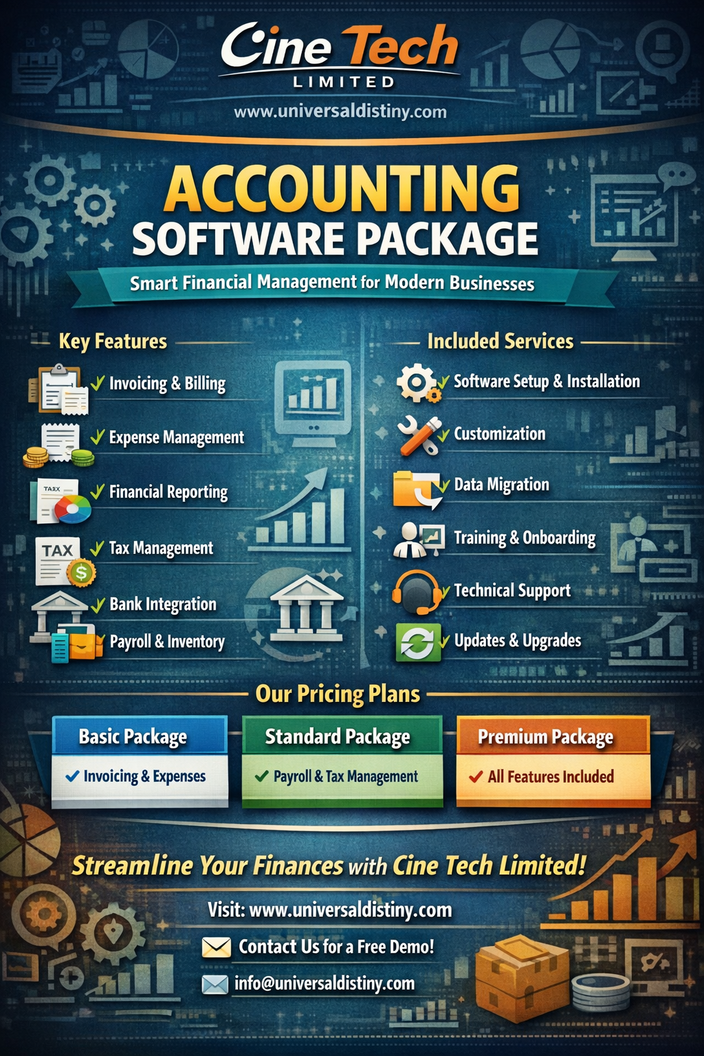 • Cloud Accessibility: Access financial data anytime, anywhere on desktops, tablets, or phones.
